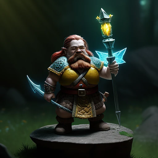 dwarf warrior, sharp focus, bright colors, clear, detailed, cinematic, dreamy glow, fantastic realism, dynamic, fairy lighting, volumetric rays, hdr. --ar 9:16
