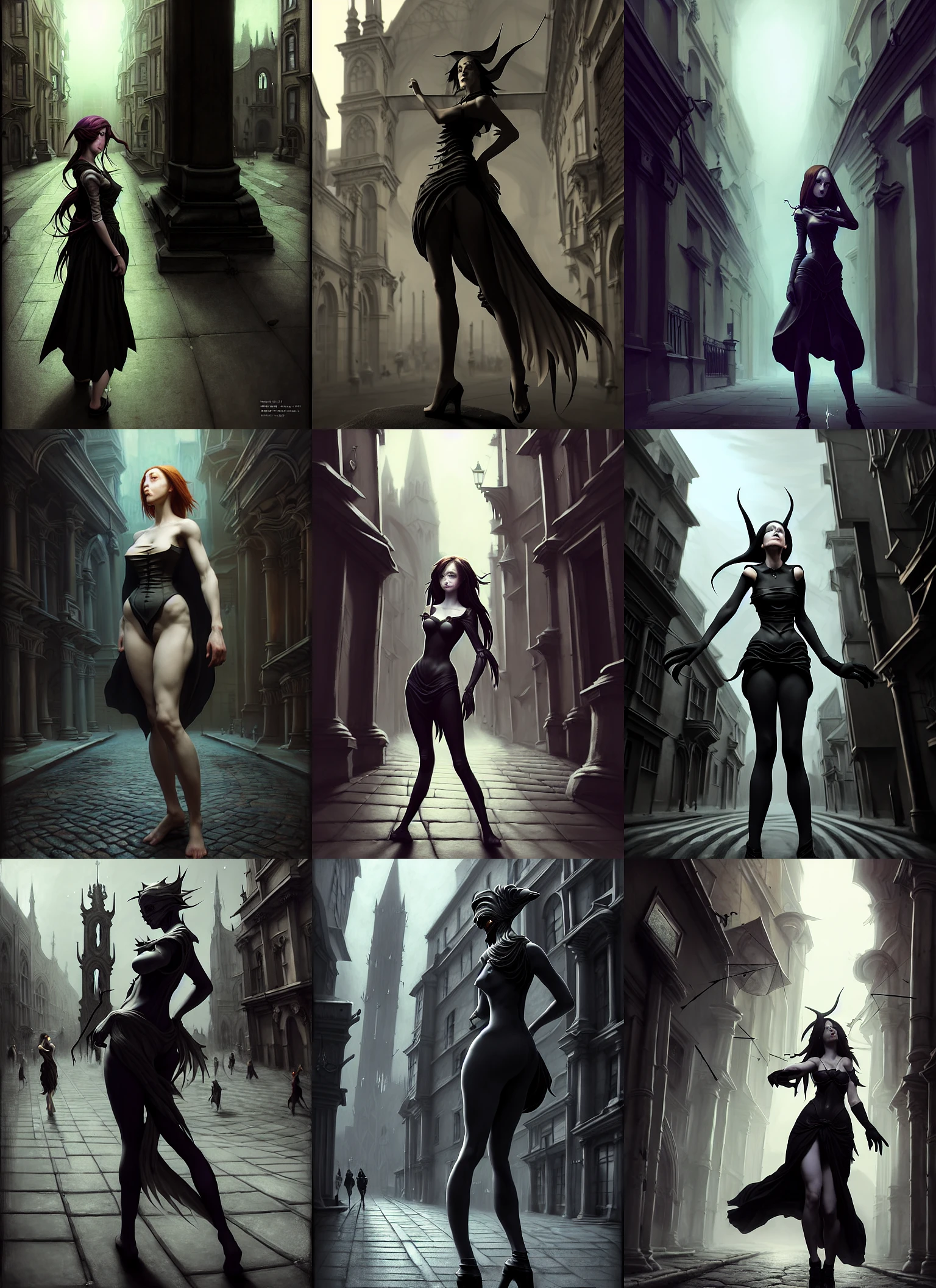 artist reference pictures pose, anatomy skills, sophisticated composition, old masters light composition, procedurally generated, epic anthropomorphic spirit girl character posing for concept art, gothic city streets behind her, costume design from metamodern designers, substance designer, PBR, HD, Ultra detailed, hyperrealistic, megascans, volumetric light, concept by master artist, made in paint tool SAI2, trending pixiv face
