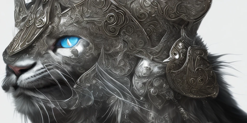 kneeling cat knight, portrait, finely detailed armor, intricate design, silver, silk, cinematic lighting, 4k, --ar 9:16 --beta --upbeta