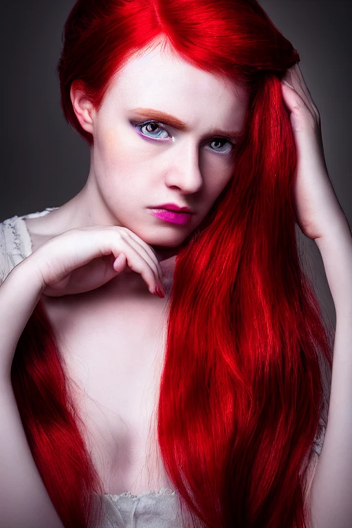 portrait of beautiful queen | red hair | sad look | centered | key visual | highly detailed| 8k | cinematic | 50mm portrait photography, hard rim lighting photography--beta --ar --beta --upbeta