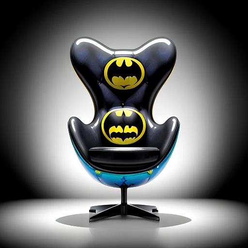 product photography, a colorful egg chair with motif Batman pattern on it, in the style of esteban vicente, pixel perfect, illusionary spaces, furaffinity, brian oldham, high tonal range, cloisonnism --ar 2000:2000