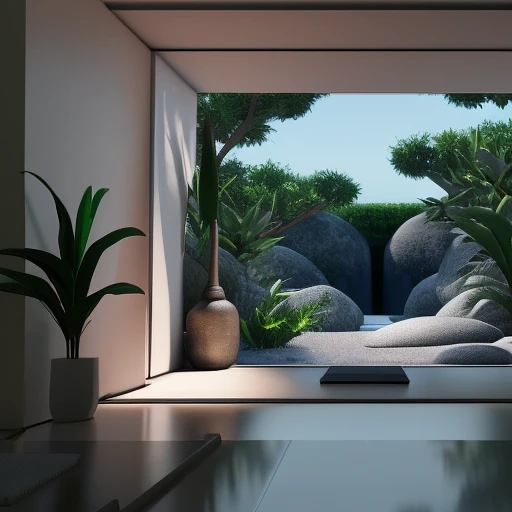 sxnfv style, zen room for meditation with crystals and lots of plants indoor architecture, Peaceful, hyperrealistic, cinematic 8k ultra hd