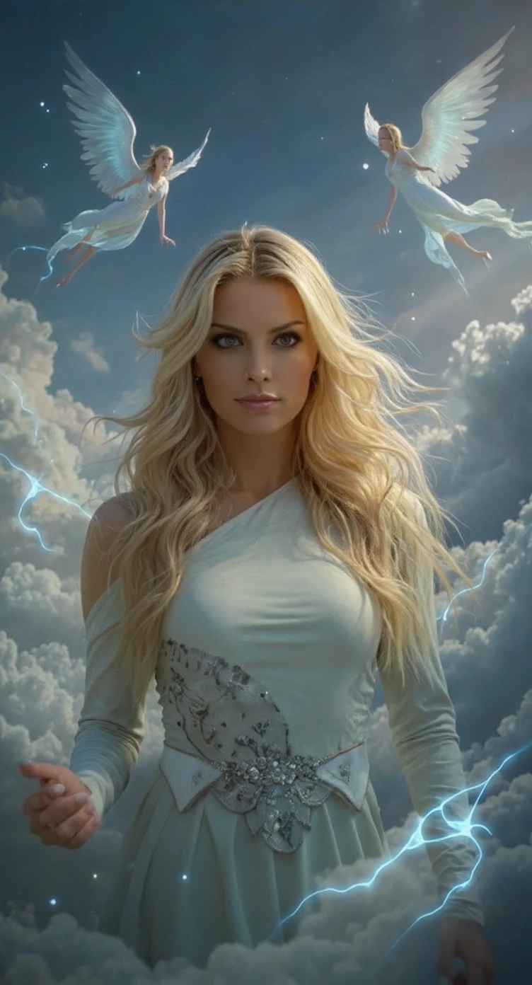 the realm of the Air, magical winds environment, spirits of the air and wind floating around, textured optic fiber octane render dynamic pose volumetric lighting perfect shading unreal engine realistic ethereal sky --relax --v 5. 2 --ar 3:4