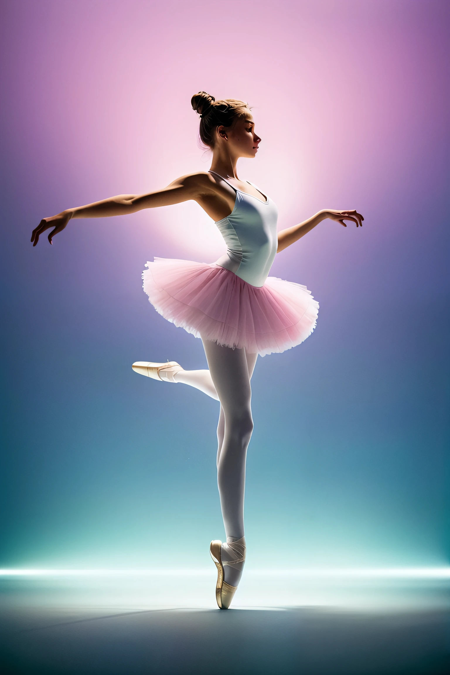 (beautiful ballerina is dancing in the dark room, focus on her)