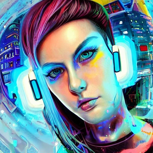 nft style, beautiful blue eyes face cyberpunk female with futuristic cyan glasses , beautiful blue eyes, shaved side haircut, hyper detail, cinematic lighting, magic , oil painting by Okuda San Miguel, spray splatter, with neon smoke, , Hyperdetailed, artwork, fantasy, with earphone, dj, front facing portrait, synthwave, hyperdetailed, intricate, kaleidoscope, extremely beautiful, ranking ligth, cinematic lighting, photo realistic, white background max detail, ranking ligth, cinematic lighting, photo realistic, by mandy jurgens, moebus, jon foster, alphonse mucha, glazing, pablo picasso, pinot noir, chiaroscuro, leonardo da vinci, Michelangelo, 8k