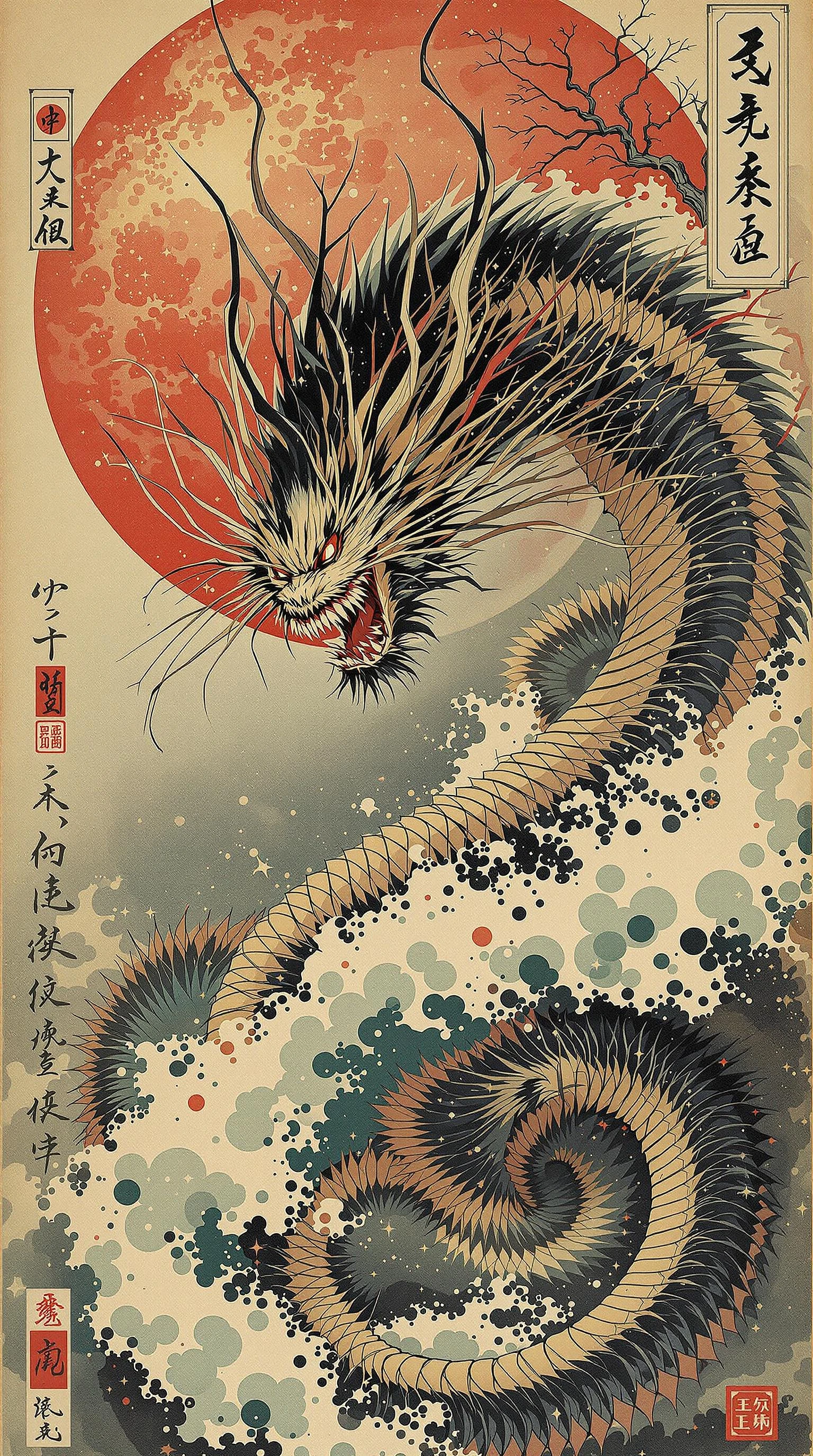 pixiu, Ferocious, cinematic, detailed, full-body shots,Japanese Ukiyo-e