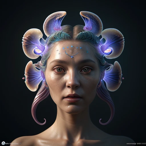 Goddess close-up portrait ribcagel. jellyfish phoenix head, nautilus, orchid, skull, betta fish, bioluminiscent creatures, intricate artwork . octane render, trending on artstation, t symmetrical artwork. cinematic, hyper realism, high detail, octane render, 8k