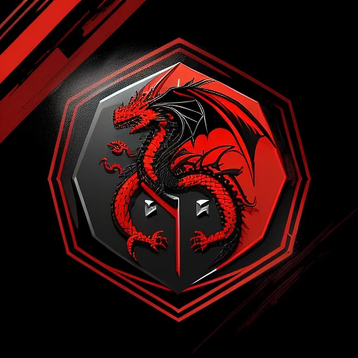 Logo gaming wear, concept, Dragon, nonagon, colour black and red and orange, gaming, dynamic, iconic, art by Wylie Beckert --ar 1:1 --v 4