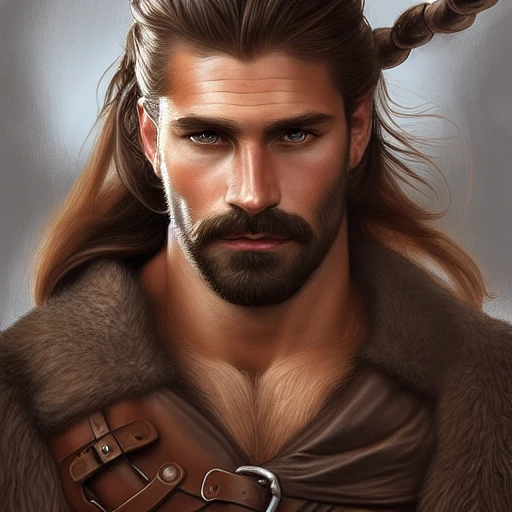 young, ruggedly handsome ranger, muscular, man bun, half body, leather, hairy, d & d, fantasy, semen on beard, intricate, elegant, highly detailed, digital painting, artstation, upper body picture, concept art, smooth, sharp focus, illustration, art by artgerm and greg rutkowski and alphonse mucha
