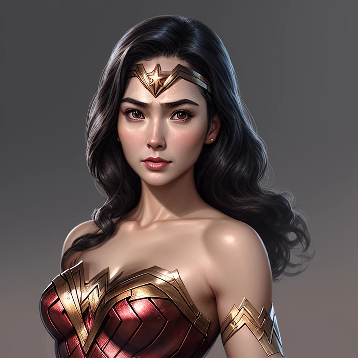 Wonder Woman Dress up, Delicate Smooth female, bust Portrait, Asian actress face, super Clear facial details, elegant, realistic: 1, Perspective, highly detailed, digital painting, art station, concept art, Smooth, Sharp focus, illustration, 8k