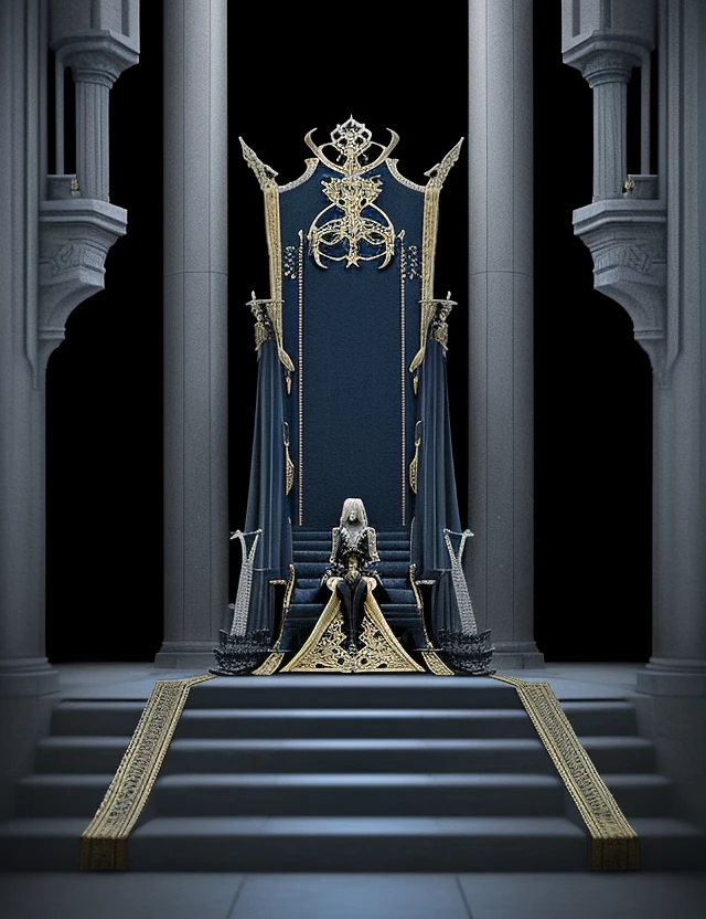 A throne, many swords, The throne is empty, at the top of the many stairs, empty, Swords in the path, anime style,