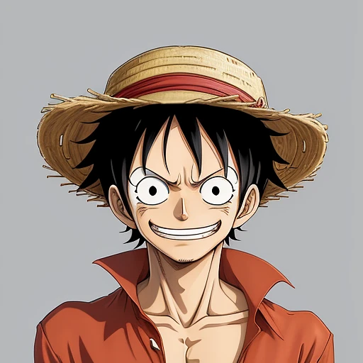 a sticker of Monkey D. Luffy from one piece, straw hat, smirk smile, anime style, minimalist design --ar 2:3 --stylize 500 --niji 5