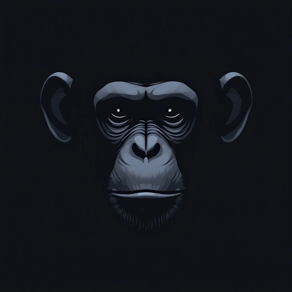 31 isolated dark minimalistic chimpanzee faces. each face is unique and has its own designelement