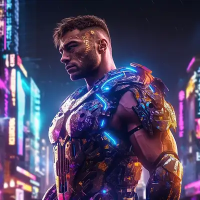 With a wide shot that places the boy far from the lens, "Neo Reverie" offers a sense of depth and perspective, allowing you to appreciate the grandeur of the cyberpunk cityscape that stretches beyond the frame.