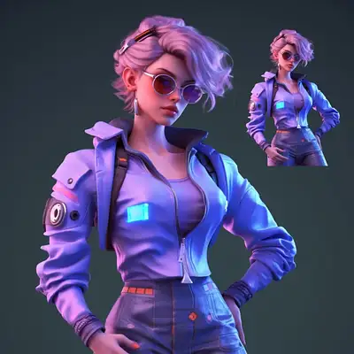 This portrait showcases the boy in a confident stance, his hands casually resting in his pockets. The cyberpunk backdrop adds an immersive atmosphere, immersing you in a futuristic cityscape that pulsates with energy and intrigue.