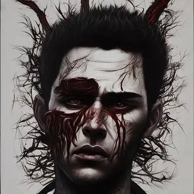 manga drawing of Guts in a dramatic pose or situation, with his facial expression and body language communicating his inner turmoil and intense emotions. The poster could be designed in a dark and moody style, using a color palette dominated by blacks, greys, and deep shades of red. The background might feature abstract or symbolic elements that enhance the mood and atmosphere of the image. The composition of the poster would be crucial in conveying Guts' emotions. The image might be cropped in a way that emphasizes Guts' facial expression, or that draws attention to specific details such as his clenched fists or tensed muscles. Lighting and shadow could also be used to create a sense of depth and dimensionality, adding to the overall dramatic effect of the poster. Overall, a textless poster of Kentaro Miura about Guts feeling would be a powerful and striking image that captures the intensity and complexity of the character's emotions, kentaro miura manga panel, hyper detailed, ultrarealistic, 8k, hdr --ar 9:16 --upbeat --v 5 --s 750
