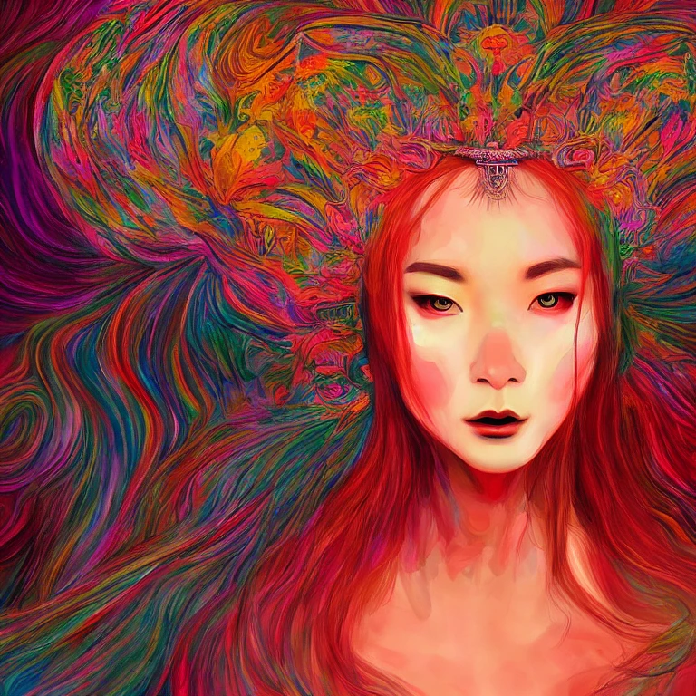 li tobler as a beautiful goddess, off-center, wanton feminine female woman desire, , insanity, psychedelic, digital painting, concept art, smooth, sharp focus digital art