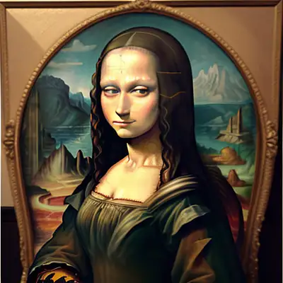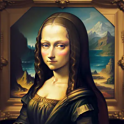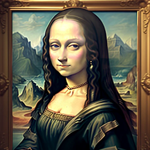 An image of marge simpsons, movie star, posing as Monalisa, the famous painting. HRD, Highly details, high quality. It uses in-painting technique.