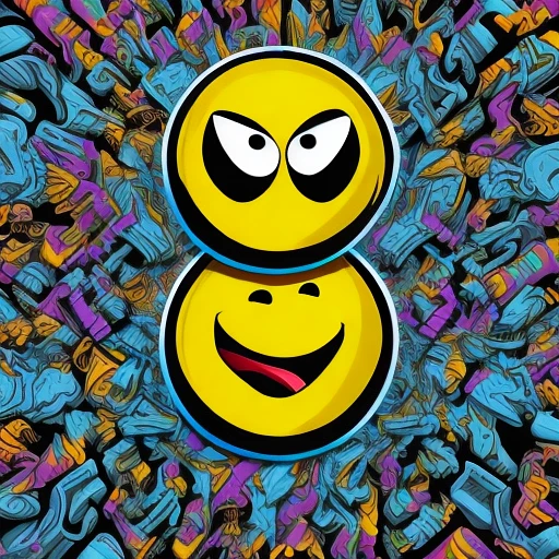 make a angry graffity style smiley with bold outlines, without a background , smiley is in graffiti style comic style