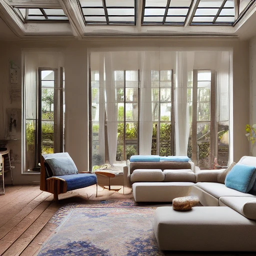 High resolution photography interior design, dreamy sunken living room conversation pit, wooden floor, small windows opening onto the garden, bauhaus furniture and decoration, high ceiling, beige blue salmon pastel palette, interior design magazine, cozy atmosphere; 8k, intricate detail, photorealistic, realistic light, wide angle, kinkfolk photography, A+D architecture