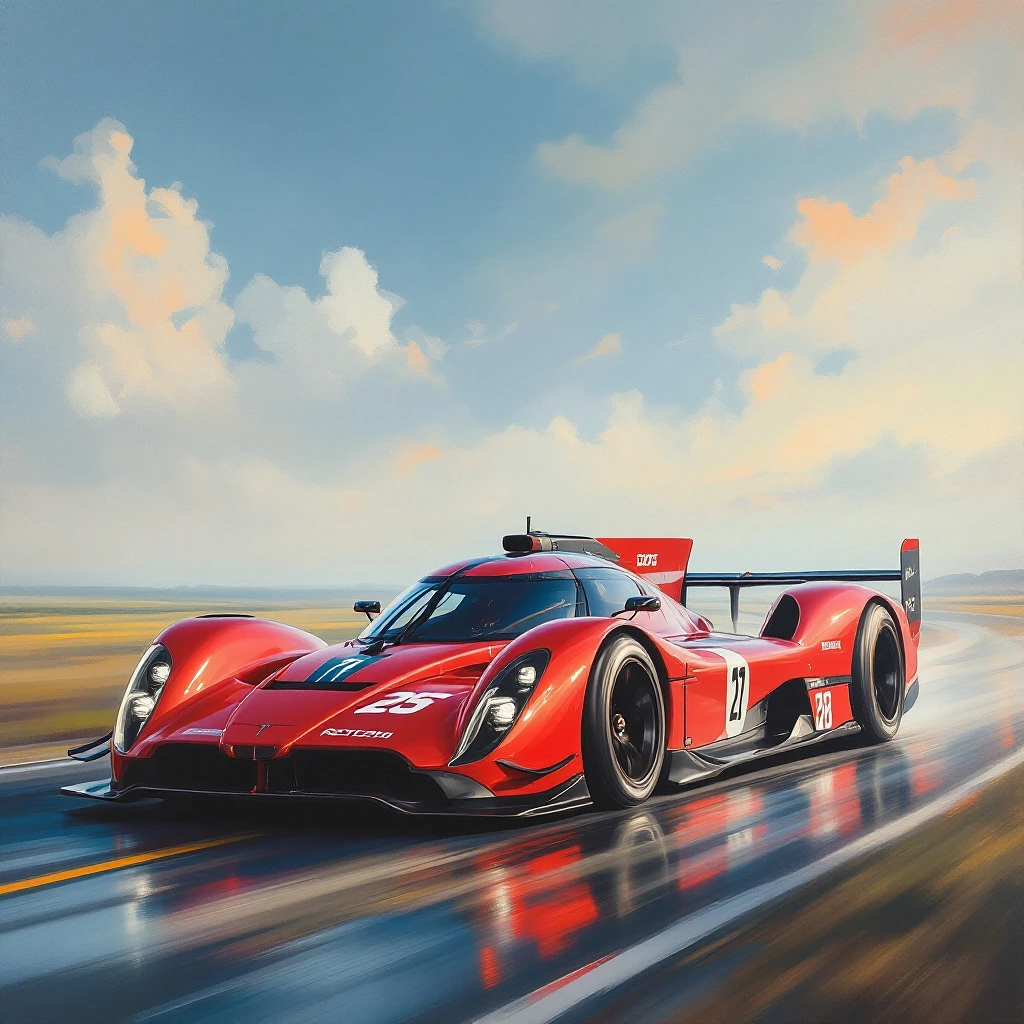 a stunning oil painting on canvas of a racing car from 2025, in the style of the Dutch Masters, 1 4 photo realistic, impressionistic landscapes, pastel colors, impressionistic portraits 3 ::1 5 ::1 --ar 9:16 --stylize 750 --v 6. 1
