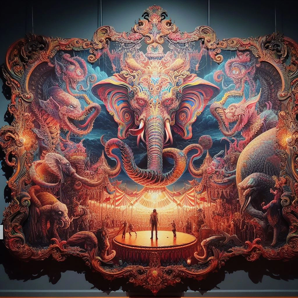 The Circus Show 2 At halloween Night By Greg Simkins and CRAOLA highly detailed, dynamic, rich colors, artstation, concept art, smooth, sharp focus