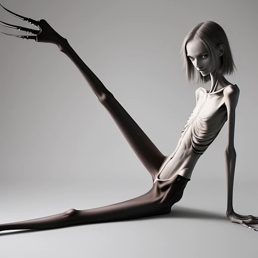 lying position of extreme skinny slender anorexic girl very skinny slender girl, with long curved claws, skinny legs and long skinny calves in high heels ,