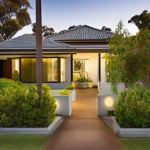 High resolution photography of modern Australian bungalow, formal garden, magazine, cozy atmosphere; 8k, intricate detail, photorealistic, realistic light, wide angle, kinkfolk photography, A+D architecture