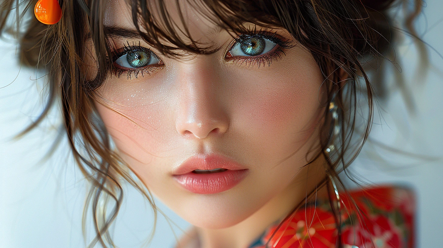 Hyper-realistic portrait of Japanese Instagram influencer ::5 Traditional yukata meets modern fashion accessories ::4 Serene face with subtle makeup, taking selfie in tea ceremony room ::3 High-contrast photography style, soft studio lighting ::2 Blending ancient wisdom with contemporary social media culture ::1 --v 6. 0 --ar 16:9 --s 600 --style raw --c 20