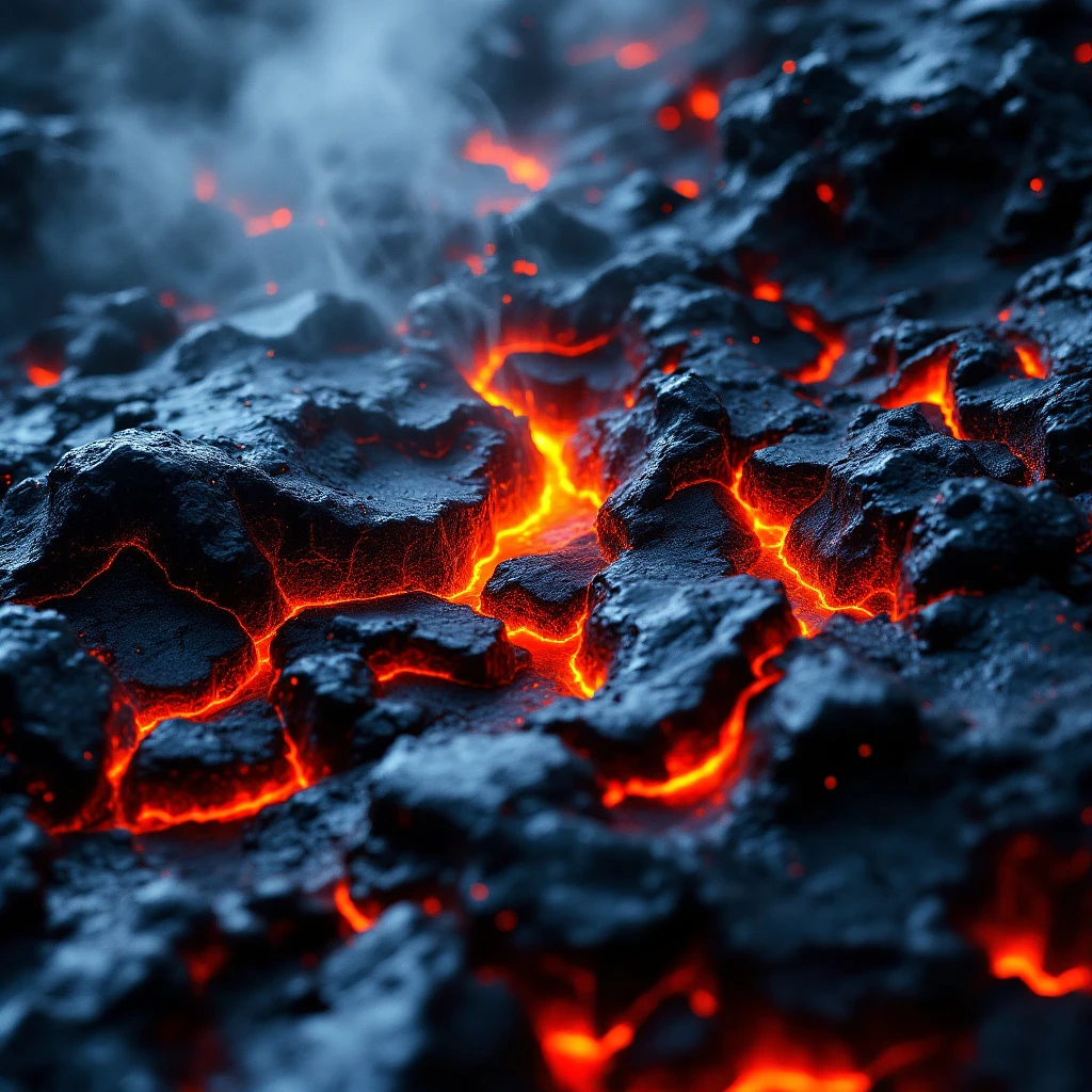 2. 3D close-up of molten lava cracking through obsidian, glowing fissures, steam rising --v 7 --style realistic --ar 4:5