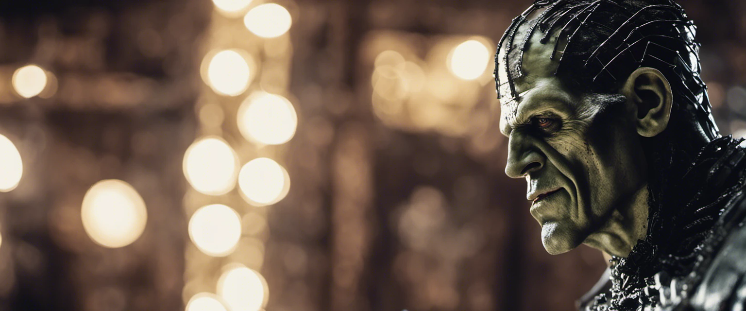 Frankenstein labatory, intricate detail, gothic, cinematic style, style: 30's movie, action scene, lightning strikes, monster comes alive