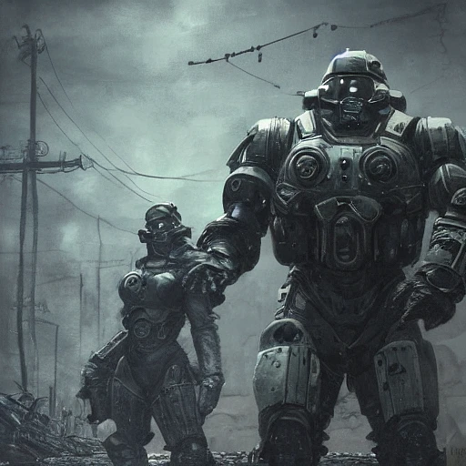tactical stealth black fallout power armor, dystopian, fallout 4 dystopian digital video game concept art by Konstantin Gudym, Adam Adamowicz, Joe Viego and greg rutkowski, 8k, digital art, dystopian, fallout series, trending on artstation, muted colors, dark tactical black