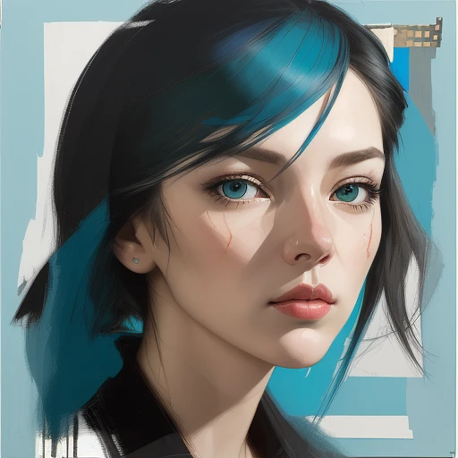 print collage of a woman's face, in the style of josef kote, grunge beauty, dain yoon, cyan and blue, highly detailed realism, multi-layered compositions, antonio mancini --ar 73:111 --stylize 750 --v 6