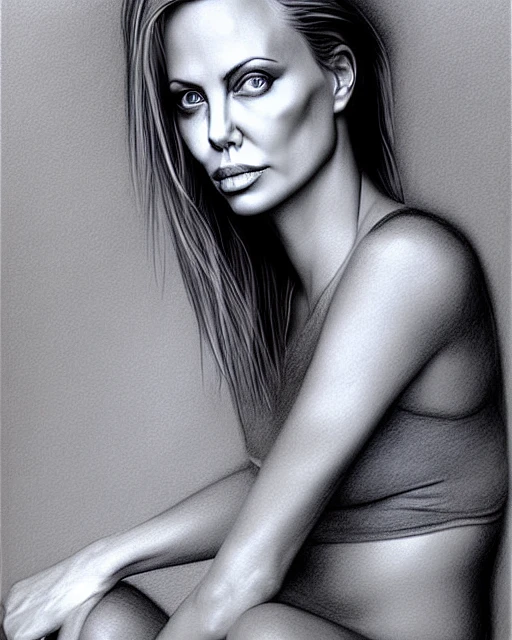 portrait of a mixture of Charlize Theron and Angelina Jolie, realistic pencil sketch, b&w, complex line drawings, on white Canson paper, by Picasso in his period blue at his beginnings. Negative prompt: shorts, short shorts, lake, ocean, river, (shorts:1. 2) , (black sports bra) , canvas frame, cartoon, 3d, ((disfigured) ), ((bad art) ), ((deformed) ), ((extra limbs) ), ((close up) ), weird colors, blurry, (((duplicate) )), ((morbid) ), ((mutilated) ), [out of frame] , extra fingers, mutated hands, ((poorly drawn hands) ), ((poorly drawn face) ), ((mutation) )), (((deformed) )), ((ugly) ), blurry, ((bad anatomy) ), (((bad proportions) )), ((extra limbs) ), cloned face, (((disfigured) )), out of frame, ugly, extra limbs, (bad anatomy) , gross proportions, (malformed limbs) , ((missing arms) ), ((missing legs) ), (((extra arms) )), (((extra legs) )), mutated hands, (fused fingers) , (too many fingers) , (((long neck) )), Photoshop, ugly, tiling, poorly drawn hands, poorly drawn feet, poorly drawn face, out of frame, mutation, mutated, extra limbs, extra legs, extra arms, disfigured, deformed, cross-eye, body out of frame, blurry, bad art, bad anatomy, 3d render