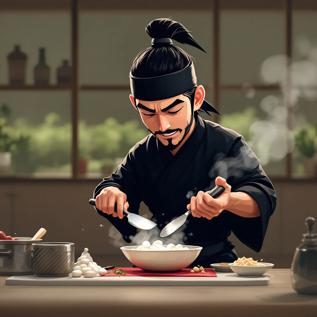 A ninja chef cook, in the style of Takeshi Murata --ar 1:2 --personalize 2gwf1qc --stylize 750 --v 6. 1