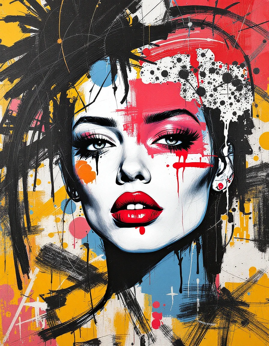 Autorretrato de jean-Míchel basquiat bansqui y un estilo impresionista, pop art y sus obras más exclusivas. Con sus caracterices trazos, dibujos y pinceladas, y motivos. Figura femenina
