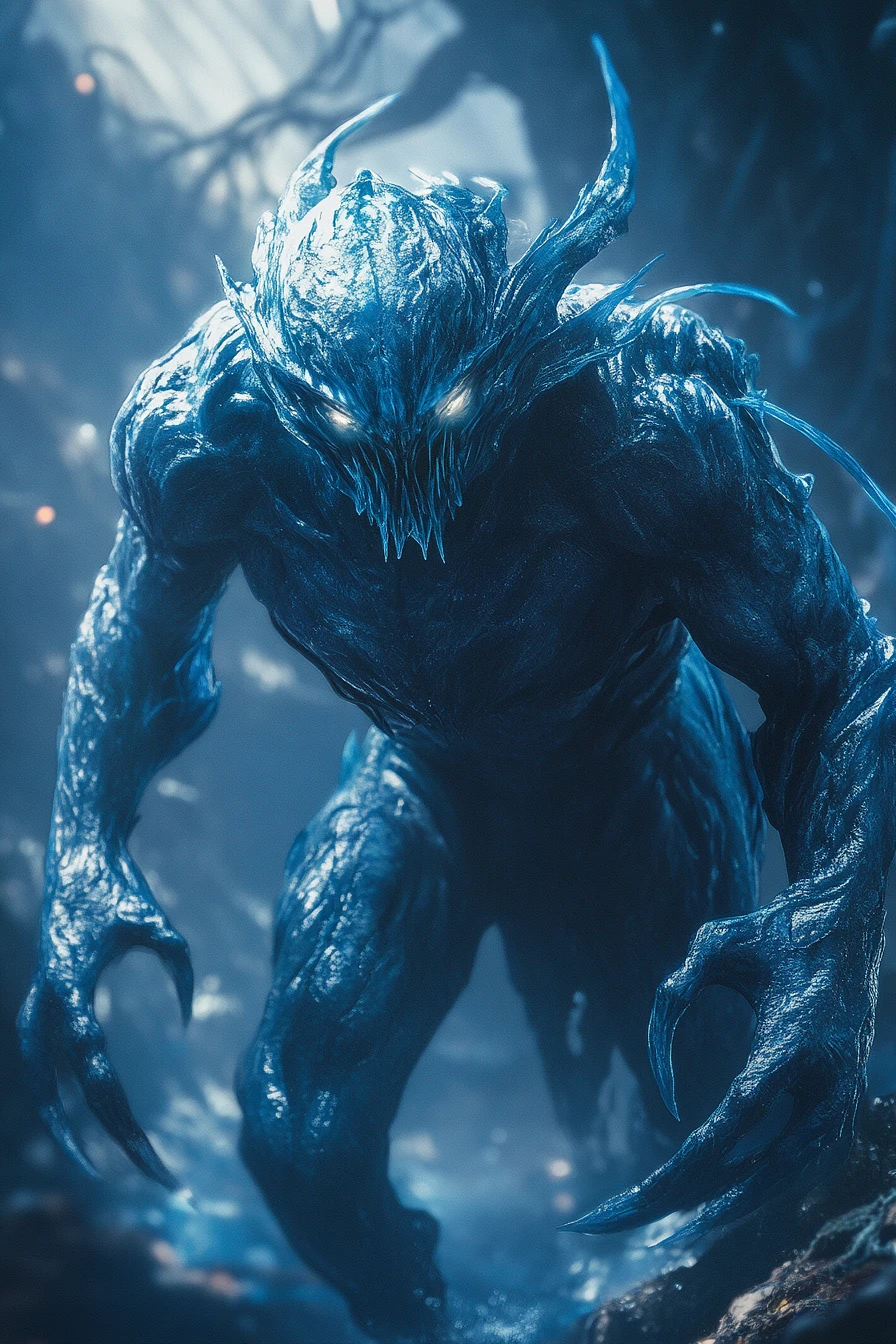 Character design creature of water elemental, heroic, deep sea, highly detailed, dark-blue color, volumetric lighting, unreal engine, octane render Character design creature of water elemental, heroic, deep sea, highly detailed, dark-blue color, volumetric lighting, unreal engine, octane render