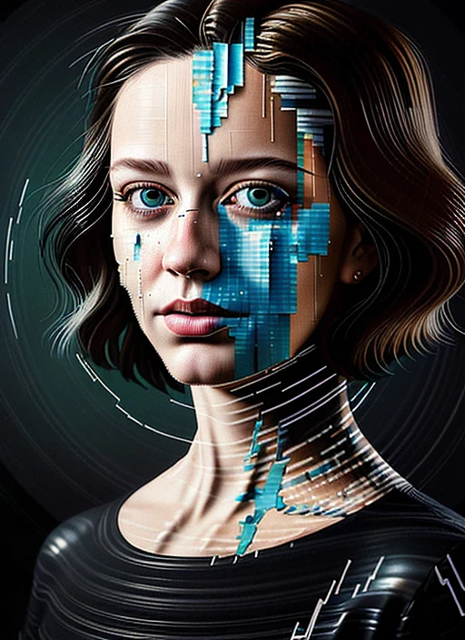 Create a digital portrait that looks like it’s been painted traditionally, but with a modern twist: a glitch effect. The portrait could have streaks or fragments of paint breaking away digitally, creating a mix of classical and futuristic elements.