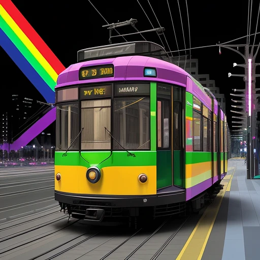 Melbourne Tram with rainbow car paint, painted in Fracoise Nielly style, high quality digital art.