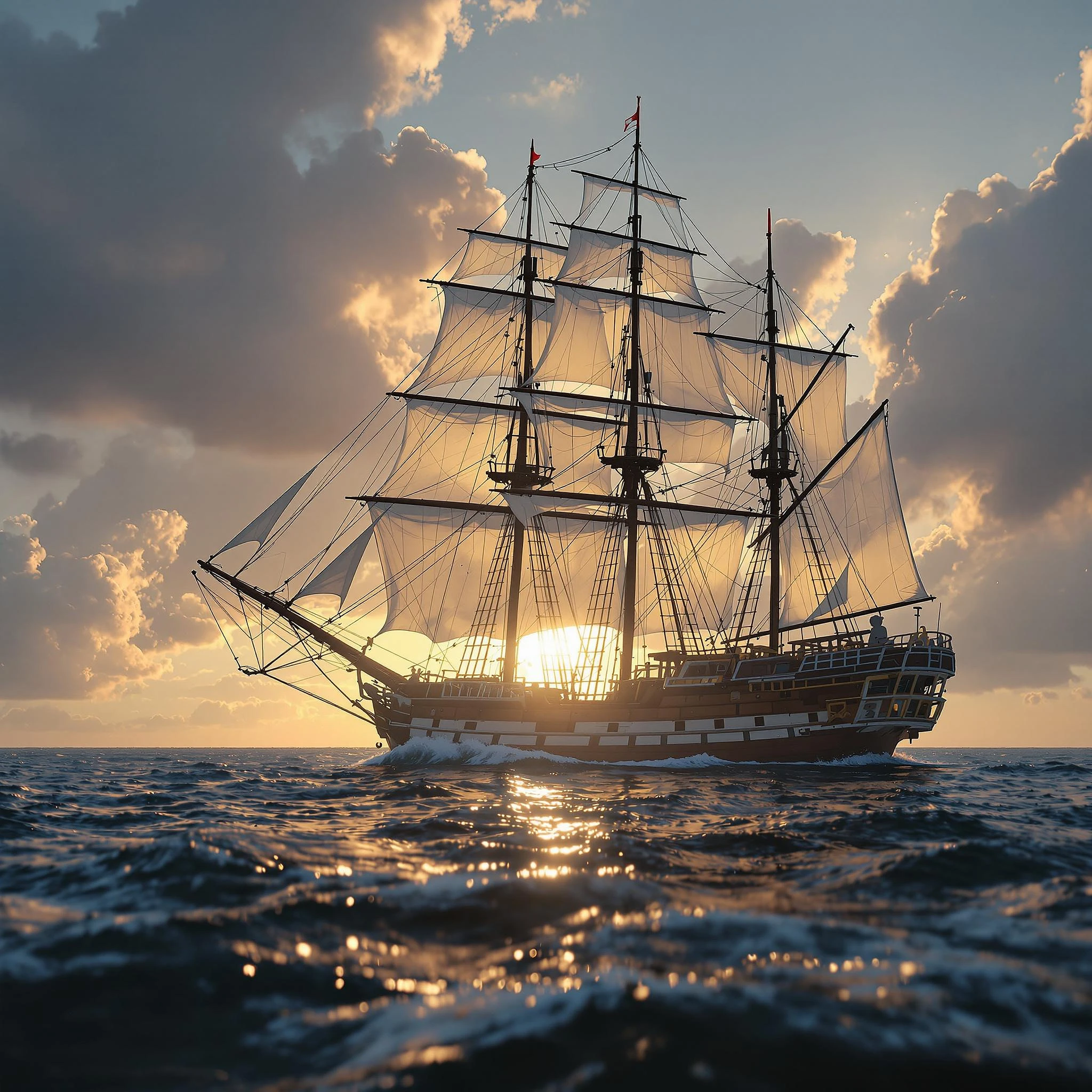 Photo of a ultra realistic sailing ship, dramatic light, pale sunrise, cinematic lighting, battered, low angle, trending on artstation, 4k, hyper realistic, focused, extreme details, unreal engine 5, cinematic, masterpiece, art by studio ghibli, intricate artwork by john william turner