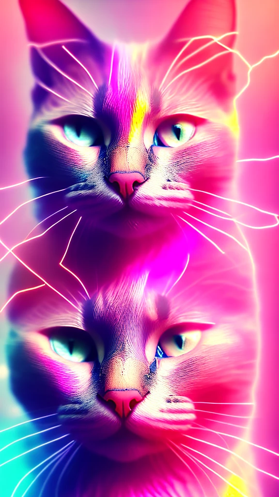 Portrait photo of pink cat with fill of lightening colors, cute eyes, light bokeh, intricate, elegant, sharp focus, i, soft lighting, vibrant colors, masterpiece, (streets) , 8k details, high quality, --ar 9:16