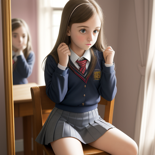 DreamShaper prompt: 12 year old girl school uniform mini skirt sitting...