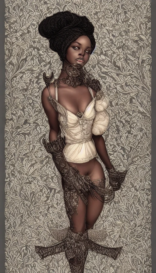 black attractive women, Bombycilla garrulus :: intricate details, ornate, detailed illustration, octane render :: Johanna Rupprecht style, William Morris style :: trending on artstation