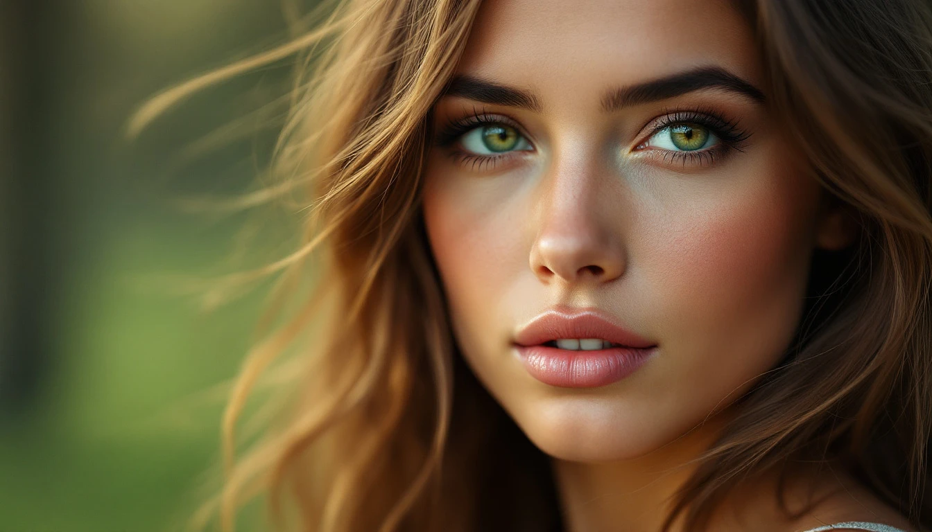 stunning fully body photograph of a beautiful young woman with green eyes, shot in HD, hyperrealistic, blurred motion background