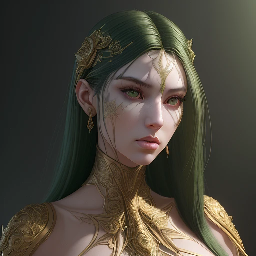 mdjrny-v4 style , young female face, green aesthetic, young female face, golden ratio, symmetric, elegant, ornate, luxury, ultra realistic, concept art, intricate details, highly detailed, photorealistic, octane render, 8k, unreal engine, sharp focus, volumetric lighting unreal engine, art by artgerm and greg rutkowski and Alphonse Mucha and Vraska Golgari, a close up of a person with makeup, egyptian art by Christian W. Staudinger, behance contest winner, video art, freakshow, reimagined by industrial light and magic, shallow depth of field, face details, egyptian makeup face detail, CGI