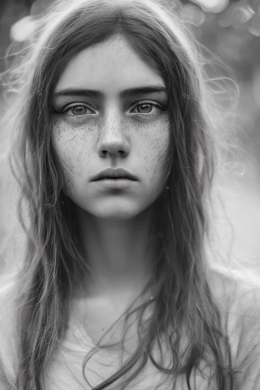 detailed and realistic portrait of an Irish girl, round eyes and short messy hair shot outside, wearing a white t-shirt, staring at camera, chapped lips, natural lighting, portrait photography, dramatic lighting, golden hour, photo realism, ultra-detailed, intimate portrait composition, Lecia 50mm, f1. 4