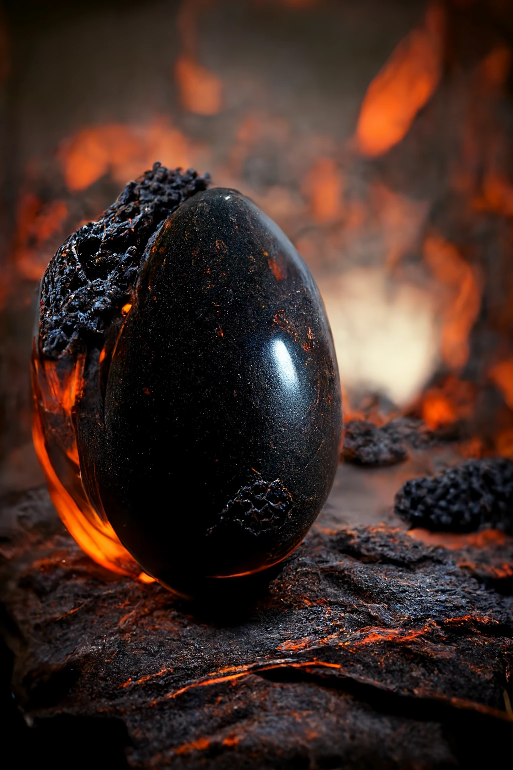 an obsidian dragon egg with lava core, epic composition, octane render, realistic, film grain, focus --version 3 --quality 2 --w 1280 --h 1920 --video