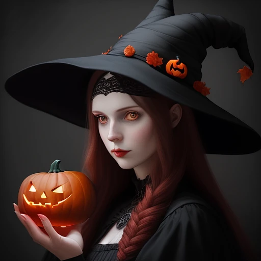 painting of beautiful women in witch hats , with one black cat, in the style of patty maher, photo, matte photo, halloween pumkin, light red and black, viktor vasnetsov, artgerm, --ar 4:5