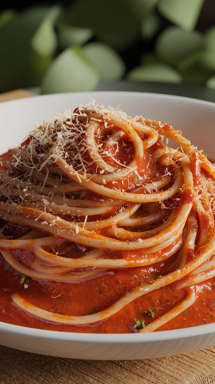 Extreme close-up, a plate of spaghetti with marinara sauce, , photorealistic, in the style of high quality food photography --chaos 20 --ar 1:2
