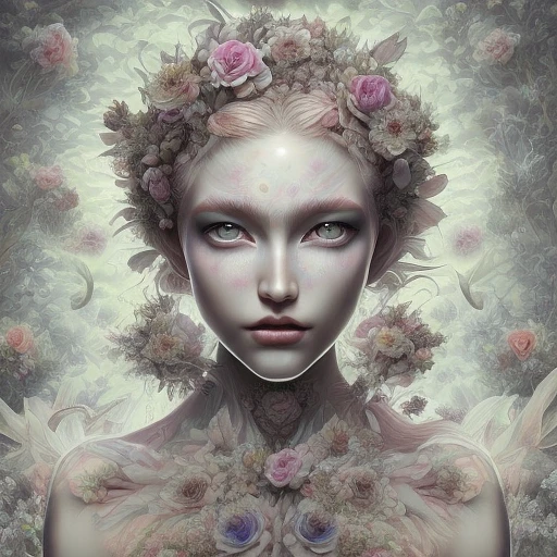 Flower Nymph:: beautiful woman, gorgeous face, symmetrical features, iridescent hair, bright healthy eyes, intricate blue eyes, dark-eyeshadow and , by Akira Hiramoto, by David Production, cel-shaded:: flat, skinny, obese, long neck, multiple faces, photo, pencil, armless::-1. 5 —uplight —stop 85 —ar 2:3 --warp —s 625